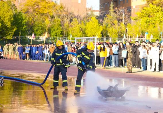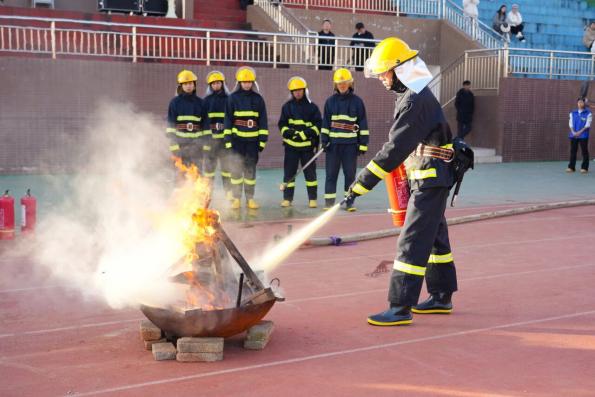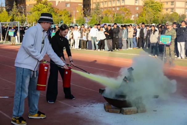 现场设置了灭火器实操体验环节,学生们在专业人员的指导下,亲手操作灭火器扑灭模拟火源,真正掌握了灭火技能。消防队员还进行了消防技能展演和装备操作展示,赢得了师生们的阵阵掌声。